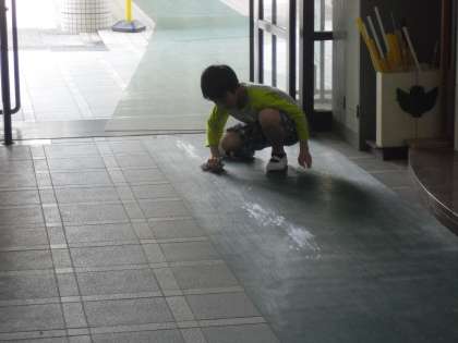 給食を運んでいる最中に少しみそ汁がこぼれました。教室へ給食を運んだあと,すぐに雑巾をもって床が滑らないように拭きに来ました。そんなことが,さっとできる子どもって素晴らしいですね。