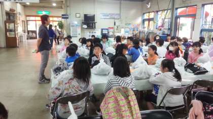 渦潮を見学しに福良港へ向かいます。全員とっても元気です。