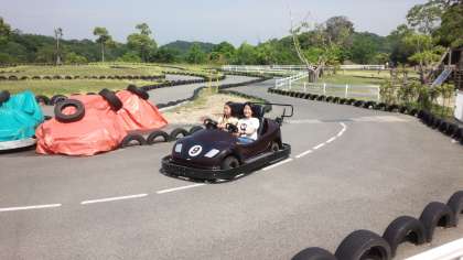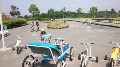 ゴーカート,おもしろ自転車も楽しそうです。子どもたちの歓声が響いています。