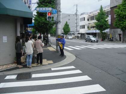 北から南への横断は,南北両側の立ち番の人が協力しておこなう方がよいとのことでした。