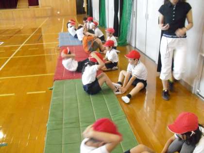 低学年の子どもたちも,スポーツテストをしました。みんなやり方を聞いて一生懸命に挑戦しました。