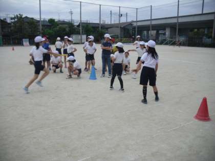 自分の立ち位置を確認したり,バトンの持ち方や渡し方,リードの取り方に気をつけて走っています。高学年に負けないくらい迫力満点なリレーを運動会で見せられるよう,引き続き練習をがんばります!