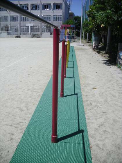 鉄棒の下にも安全マットを本日設置しました。PTAの予算によるものです。早速,昼休みに利用して遊ぶ姿が見られました。