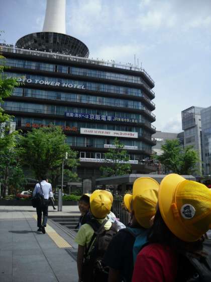 6月10日(水),よいお天気の中,京都市の様子を見るために京都タワーへ行きました。円町⇔二条⇔丹波口⇔京都駅と,JR嵯峨野線に乗り,朱二校を電車から見るという