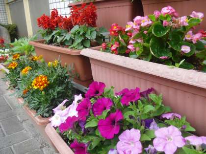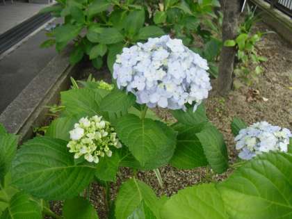 季節の花がきれいに咲き誇っています。6月に入ると,あじさいが,赤・紫・ピンク・青など鮮やな色で咲いています。雨の日は,特に花の色が鮮やかです。