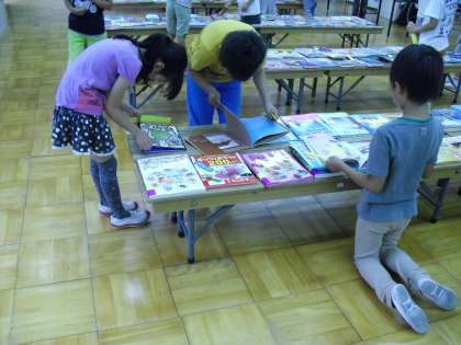 今日は選書会です。並べられたたくさんの本の中から,一人2冊選んで短冊をはさみます。選ぶ姿勢は真剣そのもの。自分が選んだ本に,また図書館で出会えたらいいですね。