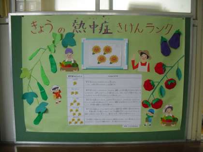 朝は少し雨が降っていましたが,お昼に近づくにつれどんどん晴れてきました。熱中症の危険ランクも昨日の2から一気に4です。