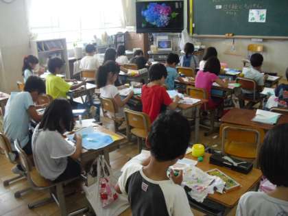 先週の図工から,『アジサイ』を題材とした作品に取りかかっています。