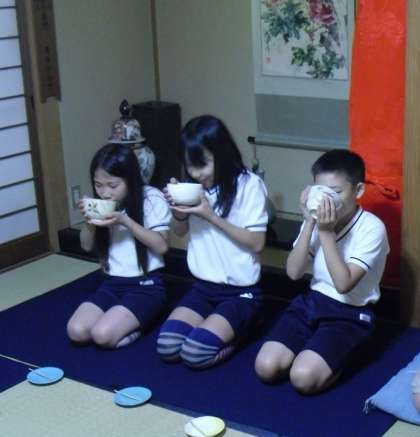 インターナショナルキッズクラブの12名が,今日はボランティアの先生のお宅で茶道体験をしました。おじぎに始まり,ふすまの開け閉め,畳の上の歩き方なども教えてもらいました。お菓子をいただいた後は抹茶をいただきました。今日ならったことを,次は外国からの留学生に教えてあげられたらいいですね。