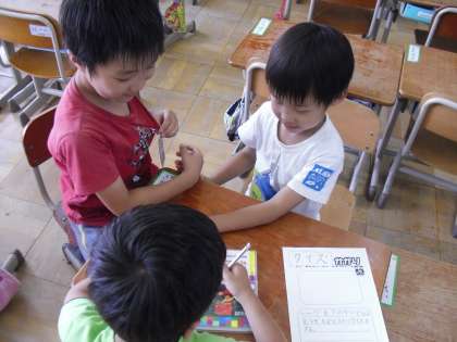 「あそびがかり」や「クイズがかり」,「たいいくがかり」などいろいろなかかりを決めました。かかり活動を通して楽しいクラスを作っていきたいです。