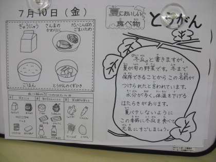 冬瓜は夏が旬の食べ物です。水分が多く体温を下げる働きがあります。
