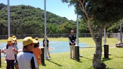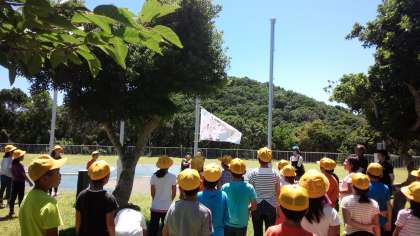 みさきの家に到着し,まず入所式です。校歌を歌い、所員さんの話を聞いて、その後、代表の児童のあいさつです。落ち着いてしっかり話すことができました。