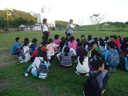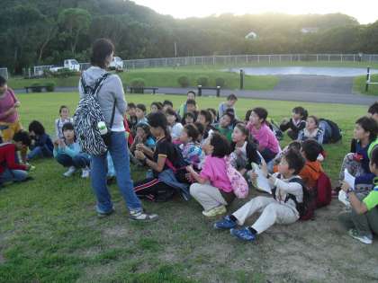 ナイトハイクです。明るいのであまり実感がわきませんが、グループで揃って出発です。どんな活動になるかが楽しみです。