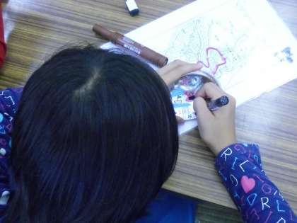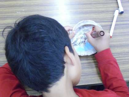 貝殻ペイント作成中です。すごい集中力です。