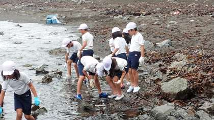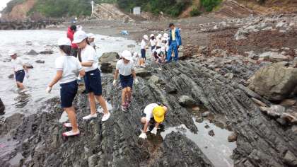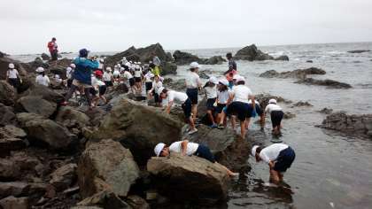観察の後は,潮だまりの生き物の観察です。「あっ,ヤドカリや」「カニがいる」と大喜びでした。