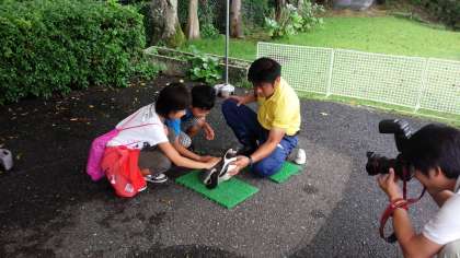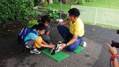 餌やりの後は、ペンギンタッチです。「柔らかい」「あたたかい」「かわいい」など口々に声を出しながらペンギンにふれていました。
