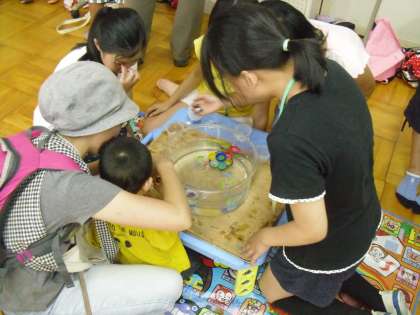 ゲームや体験コーナーも大盛況です。6年生のブースもお客さんがいっぱいです。