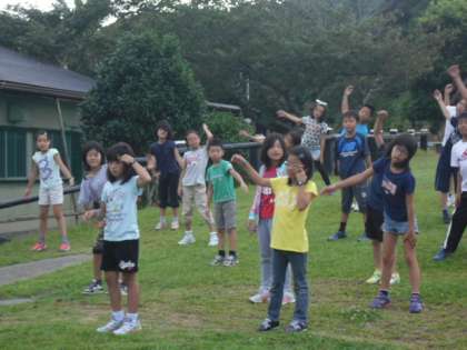 みさきの家に着くと,ラジオ体操のと入所式。