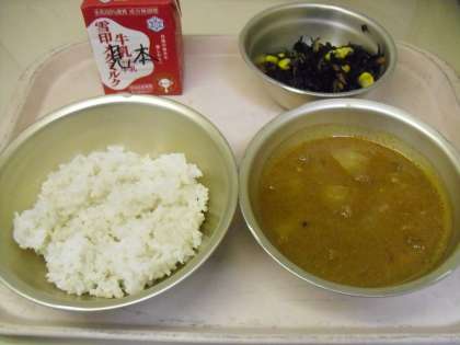 今日は,子どもたちの好きなカレーです。ルーから手作りで作っています。味わって食べましょう。