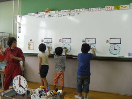 夏休みが終わり,最初の授業参観。今回は算数で時計の学習を行いました。