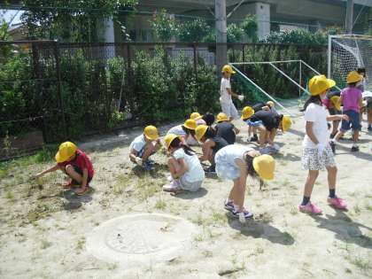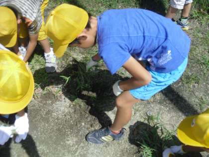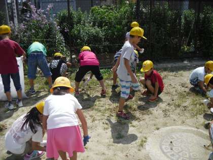 2日のハッピータイムの時間に全校で,運動場周辺の草ひきに取り組みました。暑い中,子どもたちは汗を拭き拭き,がんばりました。