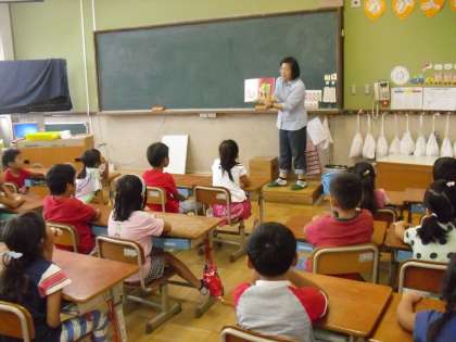 今日は,夏休み明け最初の朝ヨムです。学校運営協議会の読書活動部会の取組の一つです。今日もたくさんのヨムヨムのメンバーの方が各教室に入り,読み聞かせをしてくださいました。