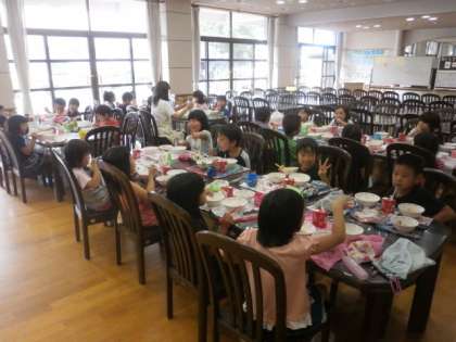 1年生は,始めは豆料理ということで,たくさん減らしにきましたが,食べてみたら美味しかったので,減らさなかったら良かったと残念そうにしていました。豆は苦手だけど,これならおいしくていっぱい食べられると喜んでいました。
