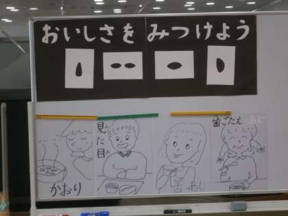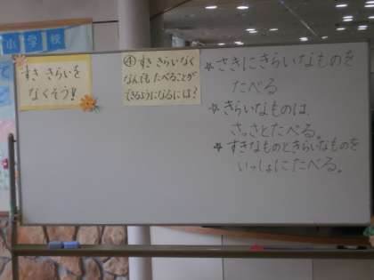 お友だちの発表を聞いた子どもたちは,いつもよりも勇気をだしてがんばって食べていました。