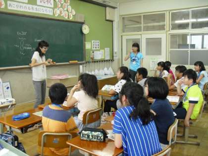 ツジムラ・ジョイ先生が今日からALTとして朱二校に来られました。6年生はジョイ先生のことを知りたくて興味津々。自己紹介を英語で聞いた後は,質問攻めでした。「好きなマンガは何ですか?」「京都で好きな観光地は?」「苦手な日本の食べ物は?」けれど,それを英語でジョイ先生に伝えるのは大変です。身振り手振りで,絵を見せて,知っている単語を並べて伝えると,言いたいことはちゃんと伝わりました。相手の言いたいことを受け止めようと心を傾けて聞き,相手に伝わるように工夫して一生懸命伝えようとする子どもたちのコミュニケーション力とオープンマインドに感動しました。