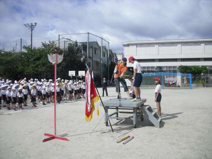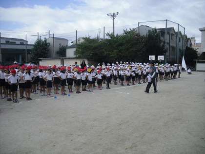 効果の後,スローガン宣言を代表の児童の合図に合わせて行いました。