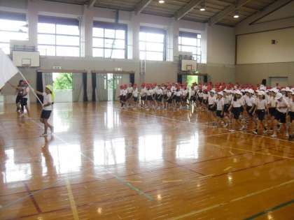 今日は,朝から全校練習です。運動場の状態がよくないので,体育館で練習をしました。みんなやる気満々で,力いっぱい練習に取り組みました。