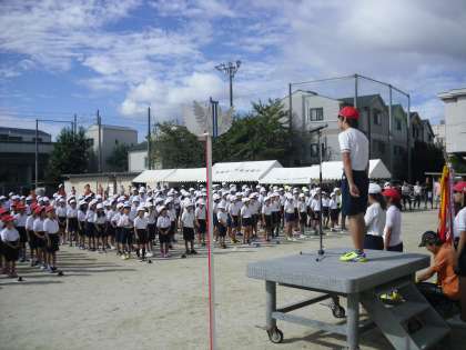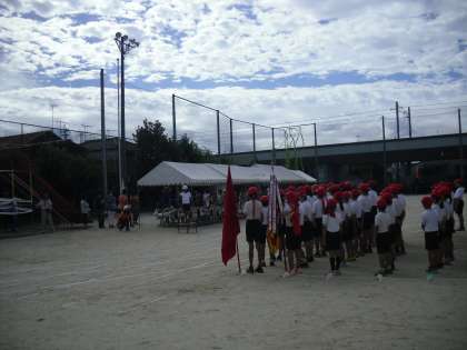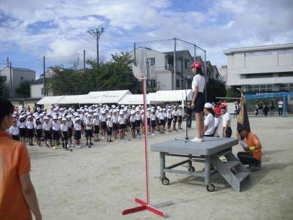 開会式では,児童会の児童が進め役です。しっかりと進行していきます。はじめの言葉,校歌斉唱,スローガン宣言としっかりと発表したり,歌ったりする姿が見られました。