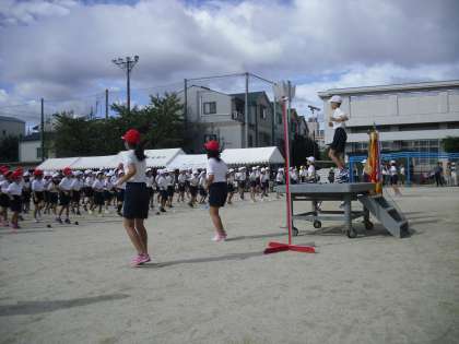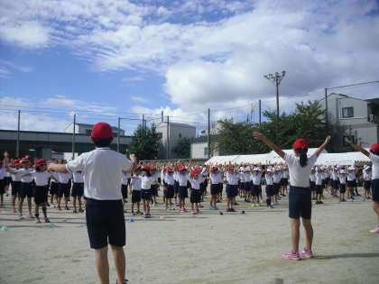 準備運動です。準備運動係の子どもたちが前に出て,リードします。全員がしっかりと動くことができていました。