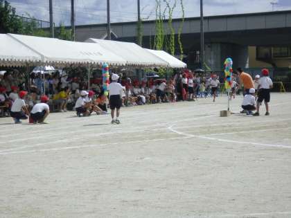 プログラム16番 3年・は組による80m走です。今年から80mを走ります。最後の直線をいかに走り切るかが勝負ですが,みんなしっかり走り切りました。