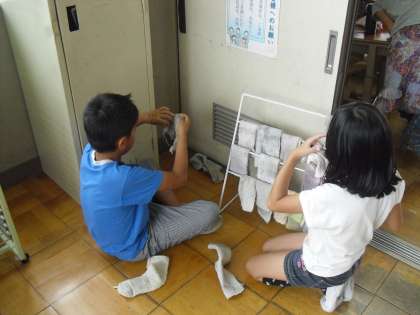 10月5日の「キラピカそうじ」のキラピカさんです。ぞうきんをしっかり洗って,クラスのぞうきんがけを最後に整理整頓していました。