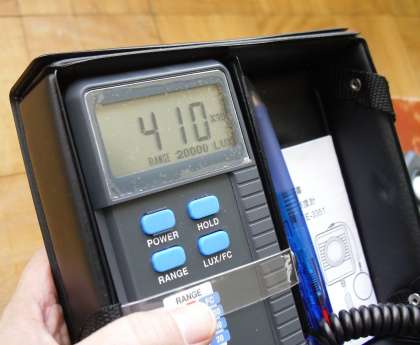 晴天の中,教室の電気をつけカーテンを開けた状態で測定したところ,窓側の一か所で4100ルクスをしめしました。電気を消した状態でも,窓側は3000ルクスを超えていました。