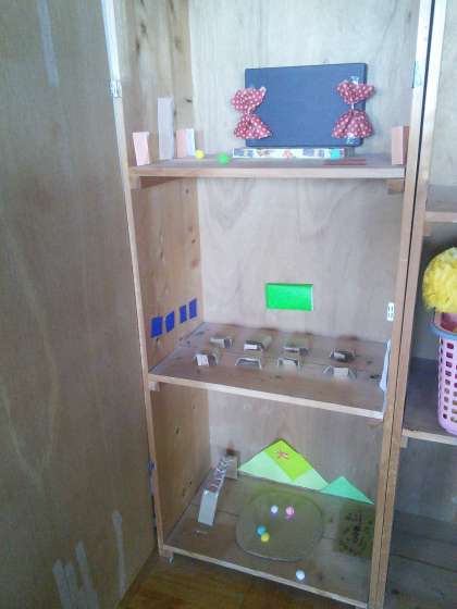 場所の特徴にあわせて,材料を工夫して楽しい場所変身させました。場所の様子に合わせてあったらいいなと思うもの,みんなが見て楽しくなるものを考えて表現することができました。