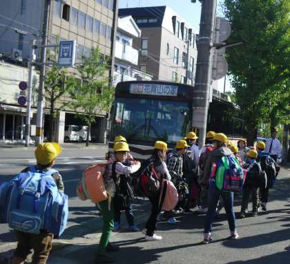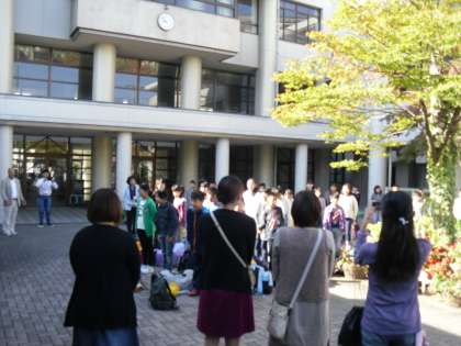 きょうから4泊5日で 花背山の家 長期宿泊学習に,5年全員が元気に出発しました。出発式〜見送りの様子です。みんな元気にいってらっしゃい。