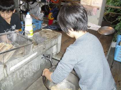 食べた後は,後片付けです。これも各グループ手分けをして,一人一人が一生懸命働きます。素晴らしい5年生です。