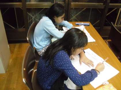 入浴を終えた後,少し早めに今日の振り返りをしました。今日よかったところ,課題となるところを出し合い,明日のめあてを決めました。