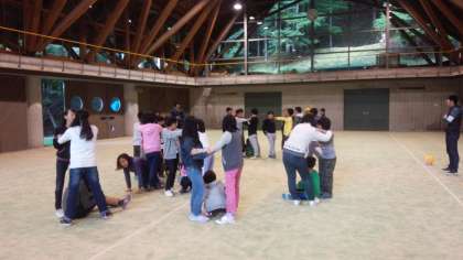 キャンプファイヤーを盛り上げるために、練習をしました。結構楽しんで練習していました。