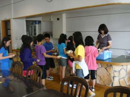 5年生では,カレーにおかわりの列ができていました。