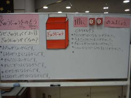 今日の学習では,牛乳の体の中でのはたらきなどを学習しました。