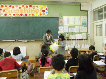 1月8日(金)3校時,ALTのJoy先生に,3のいの教室に来ていただきました。自己紹介で,自分の名前と好きなことか得意なことを絵を見せながら,一人ひとり伝えました。Joy先生には,前にも給食に来ていただいたことがあったので,“Nice to meet you again!”とあいさつもしました。みんなしっかり伝えることができて,Joy先生にほめてもらいました。後,アメリカと日本のNew Yearの迎え方の違いをきいたり,自分のめあてを英語で★に書いたりしました。楽しい時間でした。