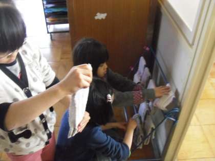 掃除の時間が終わるころになると,低学年の手洗い場付近は,汚れた雑巾をきれいに洗う子どもたちでいっぱいになります。でも,きちんと並んで待つ姿に「さすが朱二の子どもたちだ」と感心します。
