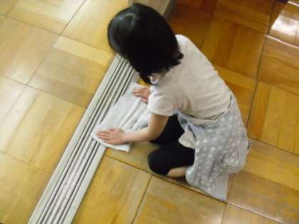 1年生も掃除が上手になりました。ぞうきんを使って,ドアレールに溜まったほこりを丁寧にふき取っていました。