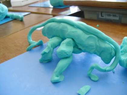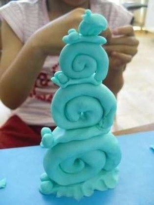 粘土を伸ばし,ひもをつくり,ソフトクリームや橋いろいろなものができました。