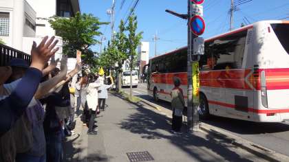 朝7:45に全員元気に集合し,出発式では校長先生の話を聞き,代表児童の挨拶を聞き,みんなで協力して楽しく規律ある修学旅行にしようとの思いを新たにしました。見送っていただいた地域の方,保護者の方,ありがとうございました。たくさんの思い出とともに明日元気に帰ってきてほしいです。