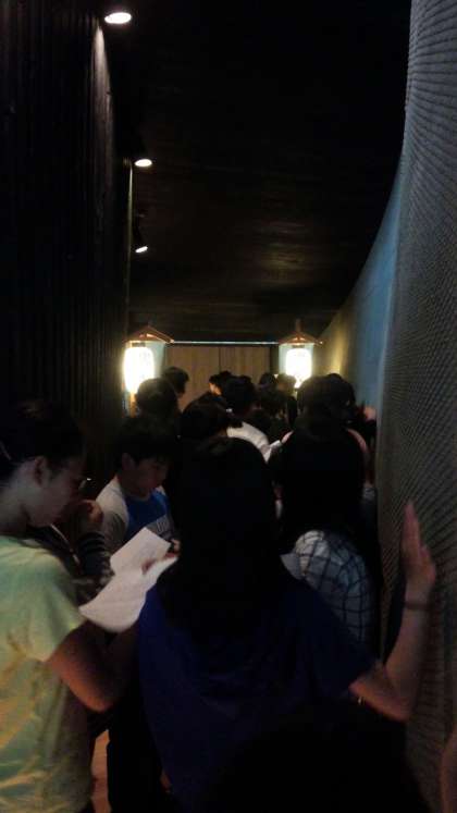 淡路人形座に到着し,鑑賞しました。演目は「戎舞」と「伊達娘恋緋鹿子(だてむすめこいのひがのこ) 火の見櫓の段」です。戎舞と火の見櫓の段とてもおもしろく,前のめりになりながら見ていました。
