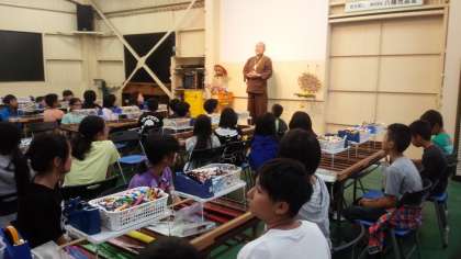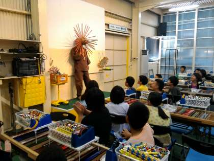 吹き戻しの里に到着しました。早速社長さんに面白い吹き戻しの紹介と作り方を教えてもらいました。